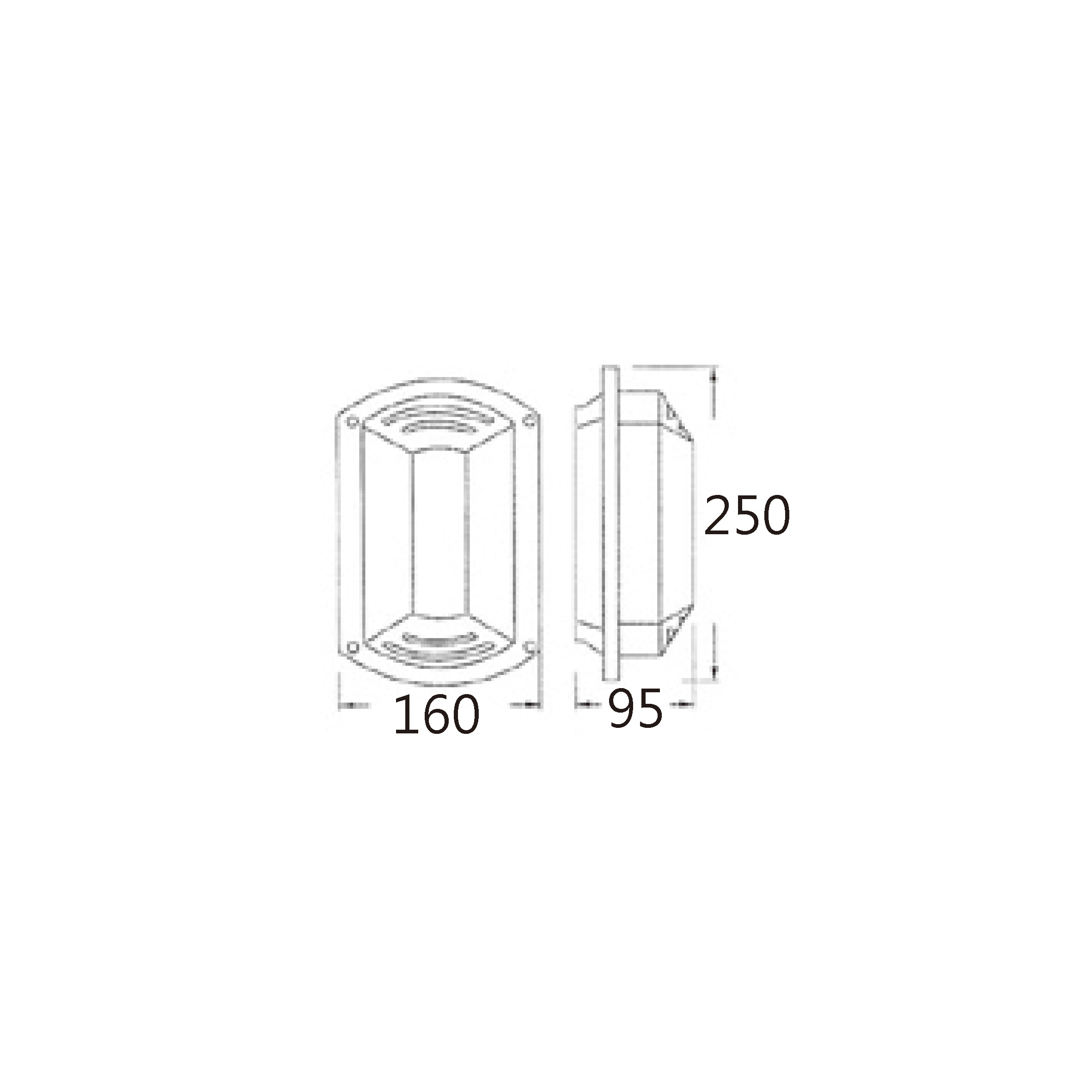 L160mm × W95mm × H250mm